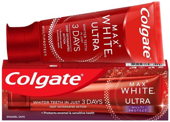 Az új generációs fogehérítő tudományunk a fogzománc károsítása nélküli fehéríti fogaid és tünteti el a mély elszíneződéseket fehérebbé téve fogaid mindössze 3 nap alatt!* Hagyományos fehérítő fogkrémekhez képest, amik csak a fog felületi elszíneződéseit tüntetik el, a Max White Ultra Multiprotect fogfehérítő fogkrém forradalmian új mélyre ható oxigénnel dúsított hatást fejt ki, amely biztonságosan áthatol a fogzománcon túlra, és eltünteti az ételek és italok által okozott mély felületi elszíneződéseket is.