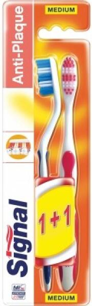 SIGNAL Közepesen kemény lepedék elleni fogkefe 2 db A SIGNAL Antiplaque közepesen kemény fogkefe 2 db-os fogkefe normál sörtéjű elrendezéssel, amely a fogak teljes körű tisztítására ajánlott. A fejrészen található közepes sörték alkalmasak normál, nem fokozott érzékenységű fogakra. Nagyon fontos szempont a fej és a nyél alakja, amely kiváló hozzáférést biztosít még a különösen nehezen hozzáférhető helyekhez is. A SIGNAL Antiplaque fogkefe fontos jellemzői, közepesen kemény, 2 db. A közepes jelzésű sörték a tartósabbak közé tartoznak. Sok hétig fog tartani, mielőtt bármilyen sérülést látna a sörtéken. Klasszikus típusú kefe az átfogó tisztításhoz, tele sörtékkel Paraméterek és specifikációk Sörték keménysége Közepes Ecset típusa Klasszikus Darabszám 2 db